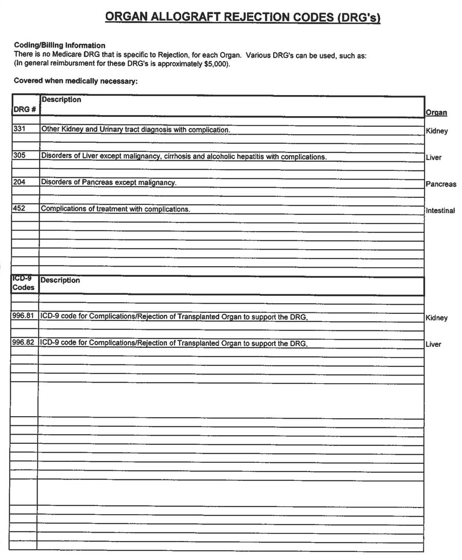Detail Cost/Charge Analysis for each Organ Transplant Type of Service