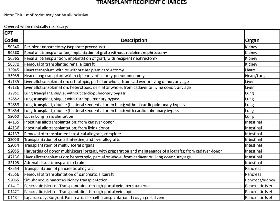 Detail Cost/Charge Analysis for each Organ Transplant Type of Service